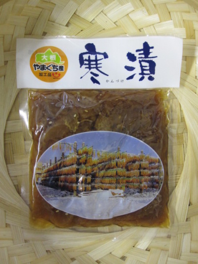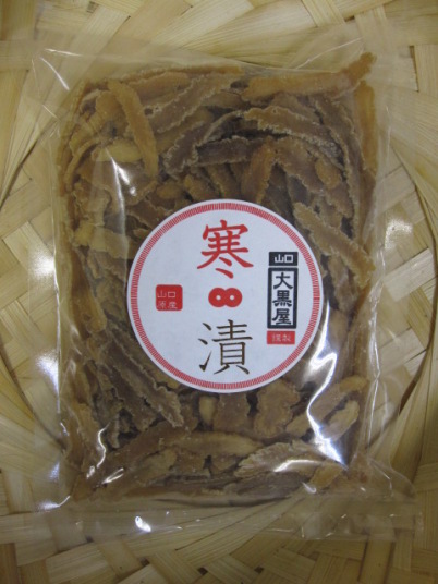 山口県特産品の「寒漬」です。干し大根の風味、パリパリとした食感を甘さを控えて仕上げました。